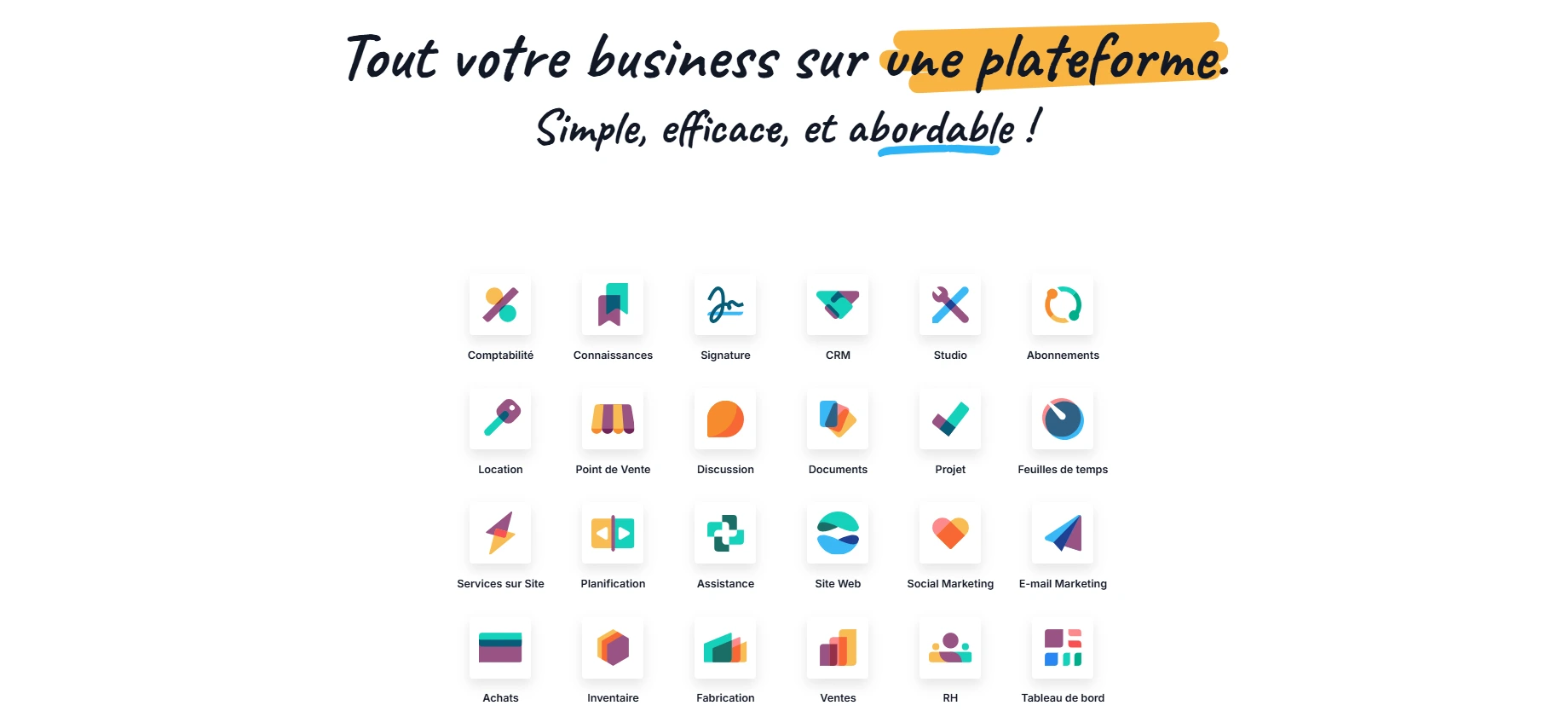 Les applications Odoo sont simples et intuitives. La prise en main ne nécessite pas de longues formations pour arriver à maîtriser chaque application.